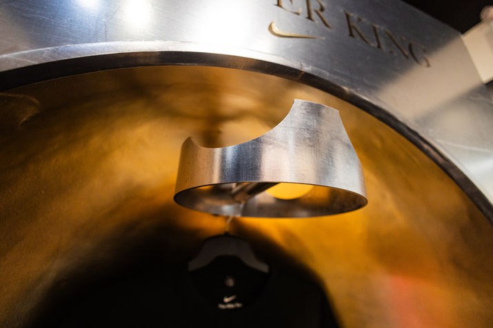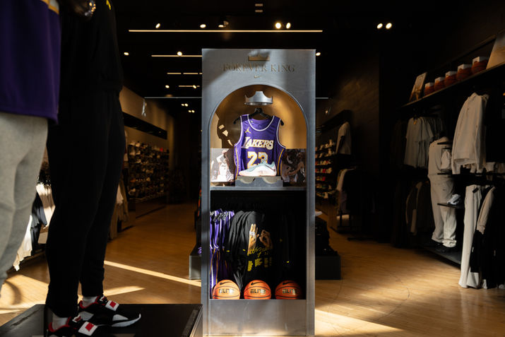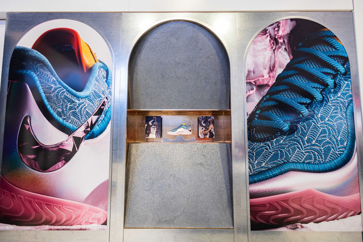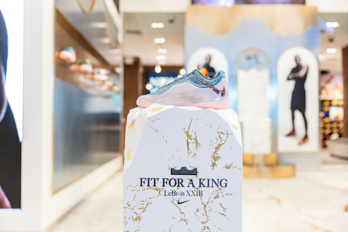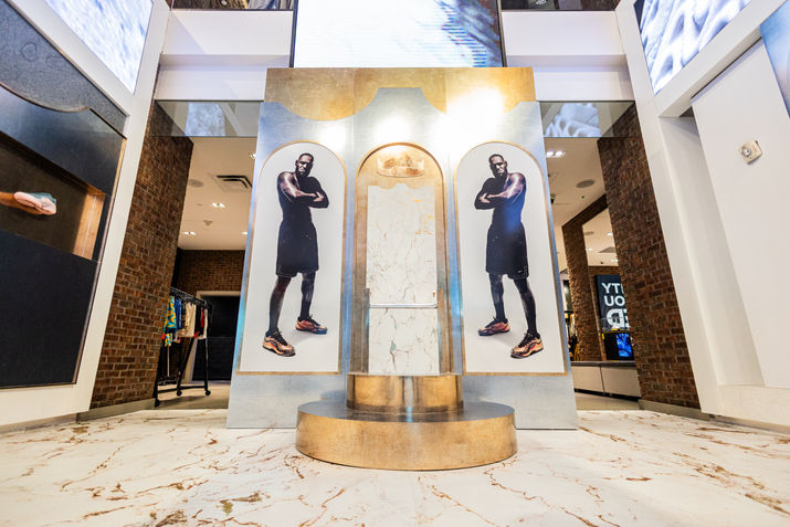 For Holiday 2025, we executed a premium LeBron James takeover across flagship Foot Locker stores, unifying Nike’s “Forever King” campaign aesthetic with high-impact retail storytelling. The environment centered on elevated materiality — aged brushed metal, textured gold, marble finishes with golden vein detailing, and LED lighting accents — creating a throne-room atmosphere that reflected LeBron’s legacy and innovation. Key hero moments included oversized campaign portraits, inset product lockers, innovation tables featuring disassembled shoe elements, digital “Behind the Design” content, and bold “mega crown” photo backdrops designed to draw shoppers into an immersive world of performance, heritage, and royalty.